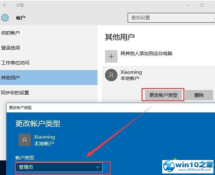7、创建完毕,我们还需要提升该帐户为“管理员”如果你需要的话,点击帐户后选择更改帐户类型,并设置成管理员;