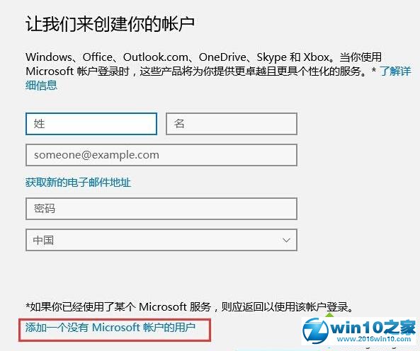5、然后再点击“添加一个没有Microsoft帐户的用户”选项;