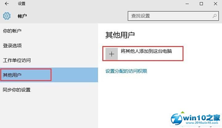 3、然后选择“其他帐户”,并点击右侧的“将其它人添加到这台电脑”选项;