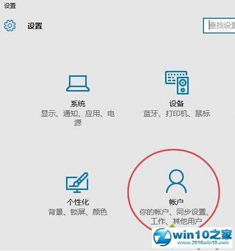 2、进入设置后,点击“帐户”图标;