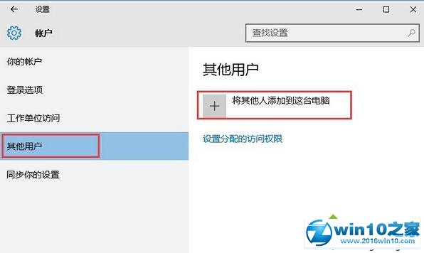 3、然后选择“其他帐户”,并点击右侧的“将其它人添加到这台电脑”选项;