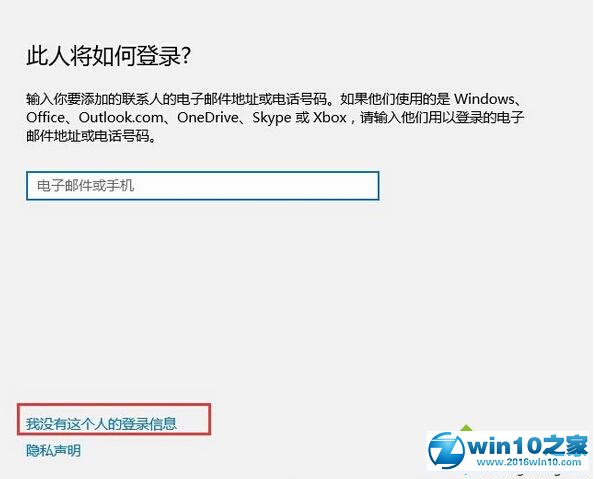 4、此时如果电脑已经联网,系统则自动会让你添加微软帐户,这时我们要添加的是本地帐户,点击“我没有这个人登录信息”选项;