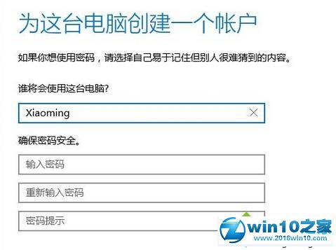 6、接下来输入你要创建的本地帐户名,然后点下一步;
