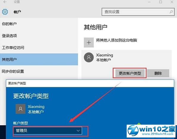 7、创建完毕,我们还需要提升该帐户为“管理员”如果你需要的话,点击帐户后选择更改帐户类型,并设置成管理员;