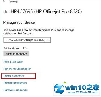 6、点击打印机属性链接;