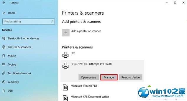 3、点击打印机和扫描仪;