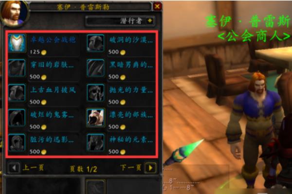 联盟:赛伊·普雷斯勒,位置在暴风城。主要出售披风,头盔,腿甲等传家宝。