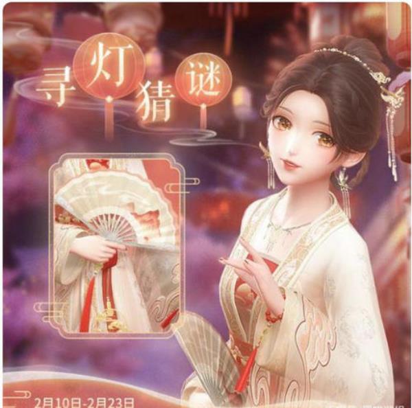2、本次活动开启时间:2月10日更新后-2月23日23:59,在2月10日更新后,通过在主题活动的界面花盈广场参与游戏寻灯猜谜,收集相关的道具花盈礼券,即可直接解锁获取非凡服饰千秋锦丽等丰厚资源。