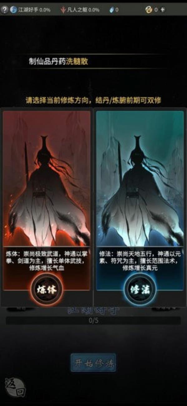 需要注意的是开局的时候是不能直接选择双修的,还是只能选择一个修炼方向