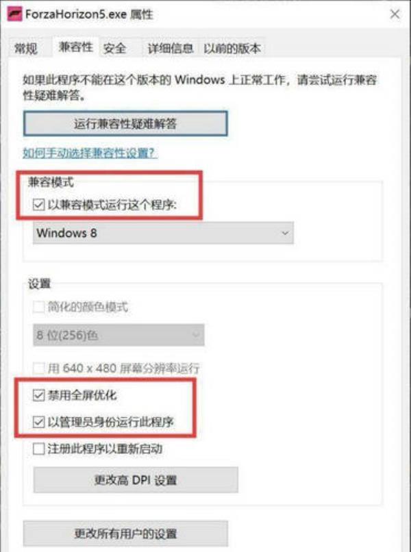 1、开启兼容模式,禁用全屏优化以及管理员模式。