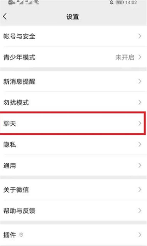 3、在设置的功能界面中我们需要点击页面中的【聊天】功能,点击进入到聊天的功能设置界面中进行设置;