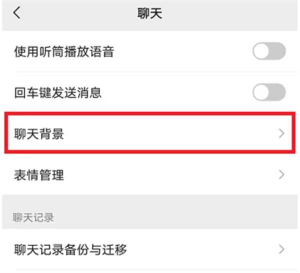 4、在聊天功能界面中我们需要点击【聊天背景】,点击进入到聊天背景界面中;