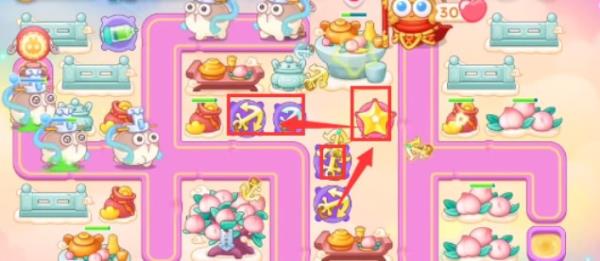 3、第一轮结束至少要把附近的道具打完,然后放置一到两个星星。