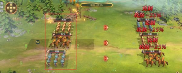注意要点:骑兵对步兵伤害+25%,受伤害减少25%