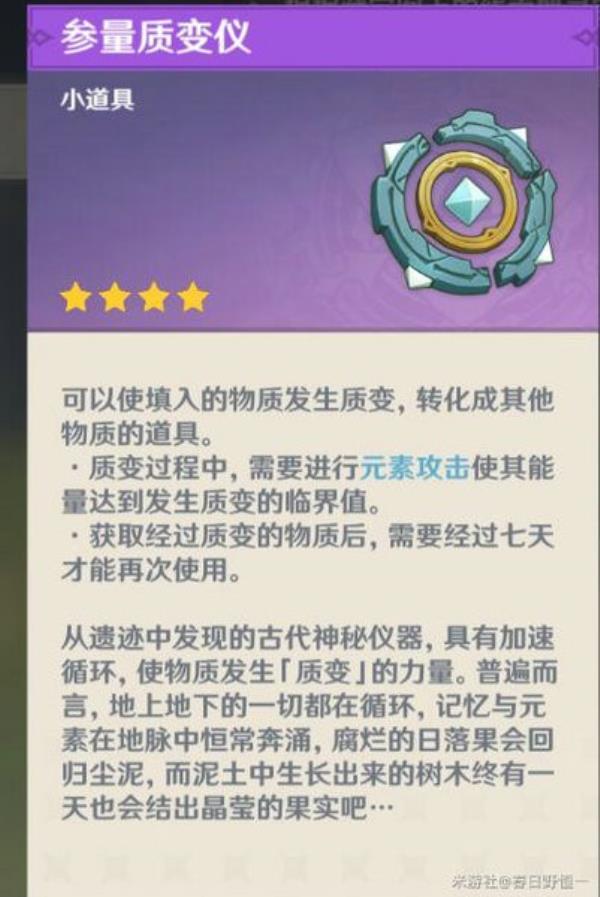 ·获取经过质变的物质后,需要经过七天才能再次使用。