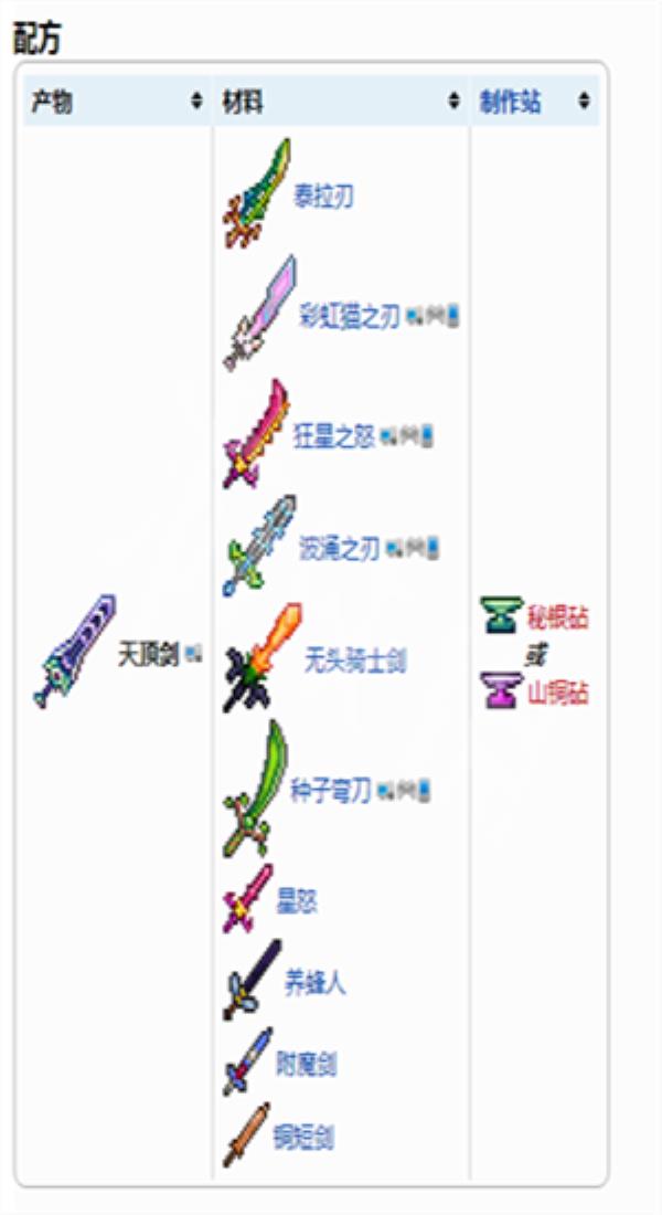 泰拉瑞亚天顶剑合成表最新|泰拉瑞亚天顶剑合成表超详细最新分享