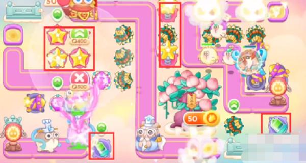 1、炮塔选择毒针、魔法球、闪电炮、多重箭、导弹、星星,主要炮塔星星和烟花。