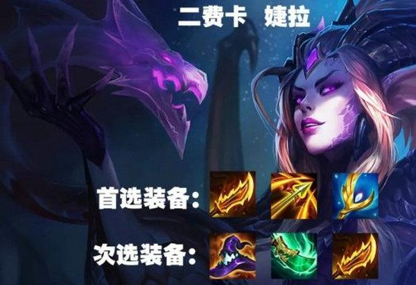 鬼索的狂暴之刃是婕拉必备的装备,利用高攻速可以快速叠加幽影龙羁绊效果,一下平A就是可以增加6点攻击以及法强,一场战斗下来婕拉可以轻松叠加到300+的法强,其次就是卢安娜的飓风,第一个是增加婕拉的基础攻速,另一个作用是婕拉叠加的物理攻击可以溅射到其余敌方英雄;第三件装备可以选择输出装备:大天使之杖,班克斯的魔法帽;也可以选择容错装备:水银,夜之锋刃