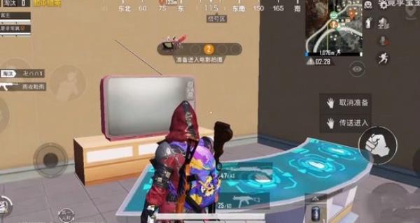 靠近蓝色的桌子会显示准备,玩家们点击准备之后再传送进入就可以拍电影了