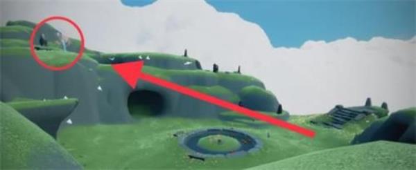 2、进入云野地图后直接往左边飞,来到有先祖石碑的山顶。