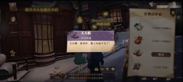 而且这个无头帽子我们可以当做礼物来赠送给对角巷的小伙伴,作为回报,小伙伴也会赠送我们雪花来回礼。