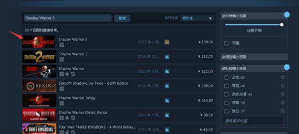 1、打开steam,搜索Shadow Warrior 3这个游戏。