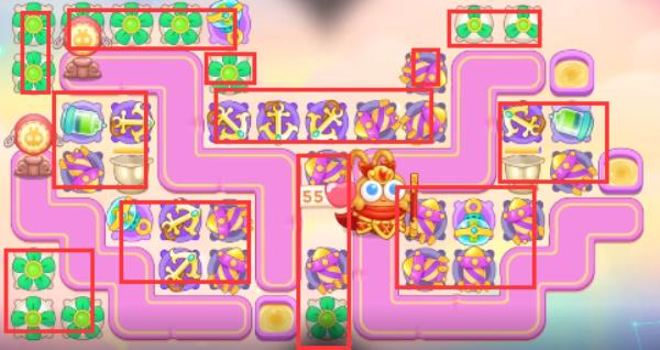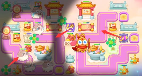 1、这一关我们可以选择的炮塔为毒针、风扇、船锚、烟花、泡泡塔,月亮,这一关我们使用风扇+船锚输出。
