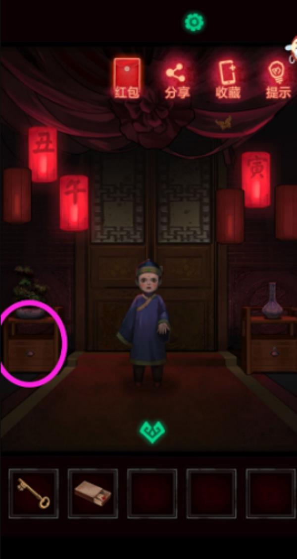 打开门读完对话之后,点击花轿再把链子拉开,可以看见这一把钥匙。