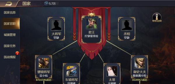 除君王外,本国的玩家根据军功进行排名任职官位。