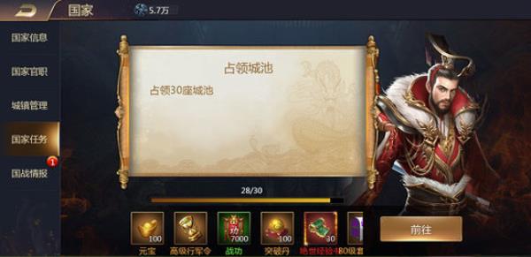 玩家根据任务系统进行国战,将获得更多的军功及奖励。