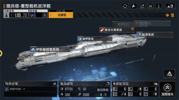 2、自身也有比较大的载机容量,一般来说造出5.6个猎兵基本就能撑起一个护航艇大队,再搭配上坦度可靠的中前排,配上有好飞机蓝图的狩猎者或者航母,围绕着空军构成的舰队基本就成型了。