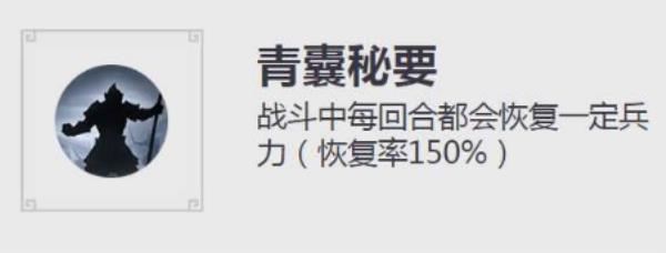 战斗中每回合都会恢复一定兵力(恢复率150%)。