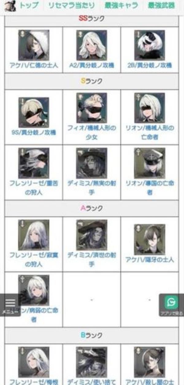 尼尔reincarnation是一款动作类的手游,这款游戏包含了传统的手游抽卡玩法,玩家可以在卡池中抽到自己喜欢的角色。对于很多新玩家来说,哪些角色比较强势对于前期开荒很重要。下面小编就来给大家详细讲解下尼尔reincarnation角色排行,一起来看看吧。