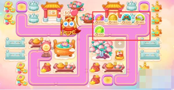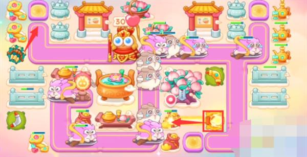 1、本关能够使用的炮塔是:火瓶、多重箭、便便、回旋镖,这一关我们需要使用多重箭和回旋镖玩。