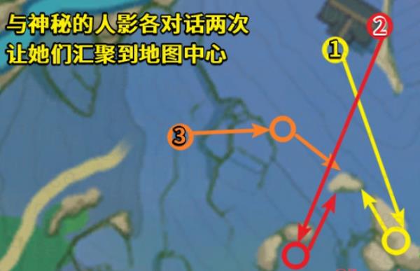 解谜攻略:与三个谜样的人影各对话两次,让她们汇聚在狐狸雕像处。