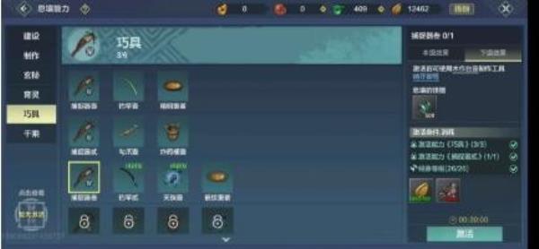 开局送了你一把白色的捕捉器,只能抓一些低等级宠物,更高品质的需要息壤研发解锁,然后在木作台制作。