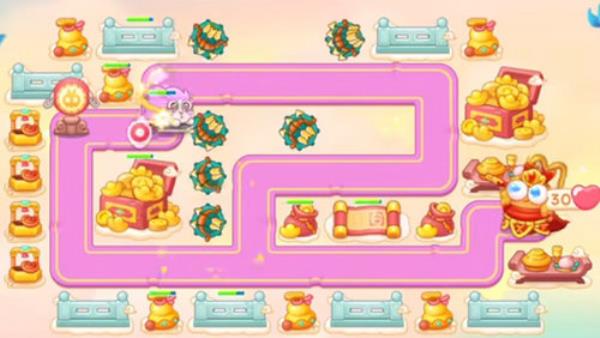 2、滑板兔出现时刚好打掉两个酒桌中间的障碍物,补一个箭塔,然后手动锁定滑板兔放置漏怪