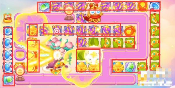 1、本关能够使用的炮塔是:毒针、回旋镖、火瓶、烟花、元宝、雷达。