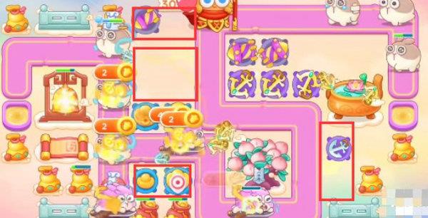 6、这一关有元宝我们可以放置满炮塔,主要在萝卜附近放烟花,其它位置放船锚输出即可。