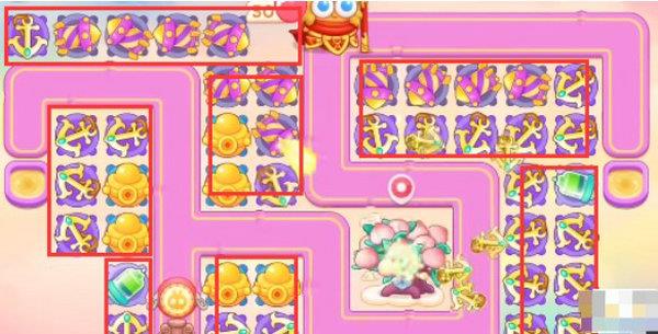 1、本关能够使用的炮塔是:毒针、船锚、烟花、元宝、鞭炮,这一关我们用船锚作为主力输出。
