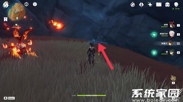 路上有两个丘丘人,尽头还有个伪装成甜甜花的骗骗花,再从这里上去