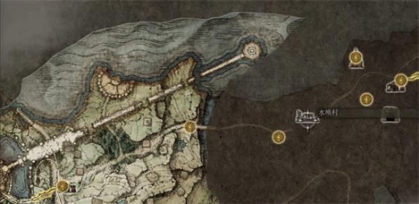 3、怎么去水唤村:上图中间有个赐福点,那里是圣人桥,桥上有个很菜的南瓜头,有几率掉落锻造石碎片,从左边穿过桥就来到了东部区域,沿着大路走即可找到水唤村。
