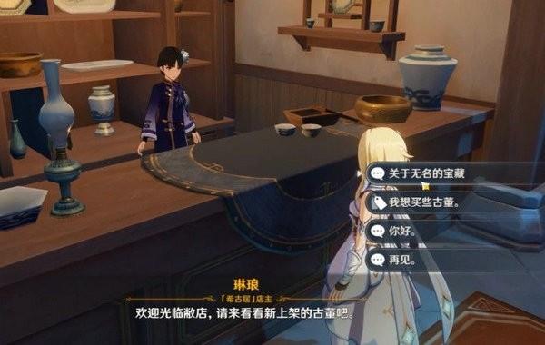 这个人便是璃月港专业卖老古董店面里的NPC“琳琅”,她在璃月大钻石标示的纪念物店铺左侧。必须留意的是,这人仅有夜里才会出现,因此 没有见到NPC的玩家能够将时间调节到夜里。