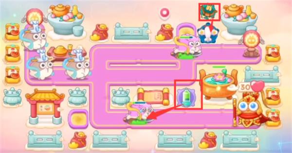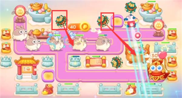 5、在后排放置烟花打飞行兔,要在桃子来之前放置两个的烟花,之后再补几个。