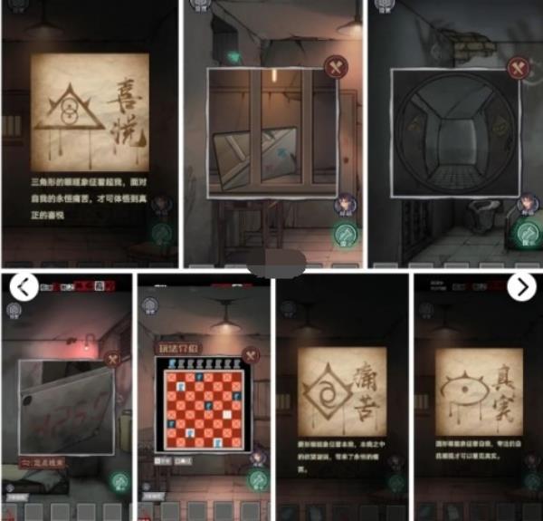 2.返回房间,马桶得到石头,对着镜子的铁丝使用老式钳子,对着床底使用铁丝,得到T字扳手,对着窗户使用,得到提示,打开抽屉得到金属扭轮,将墙壁上的图案调整好,得到光学器具,将扭轮放回,冲洗镜子,将镜子放在门外,得到提示,对着门口使用光学器具,得到提示,根据提示打开箱子得到钥匙。