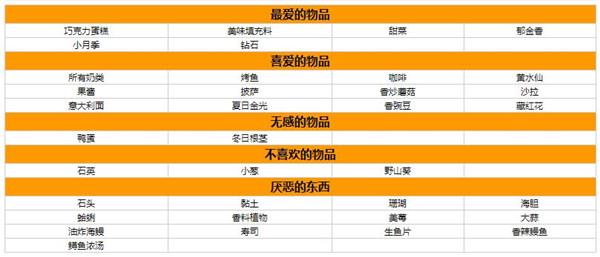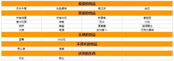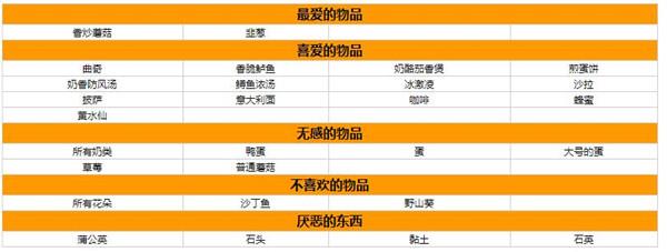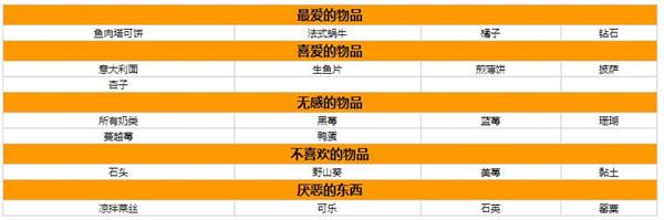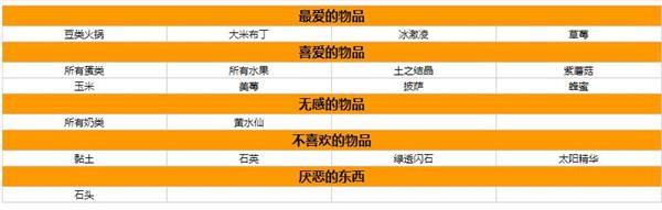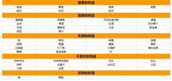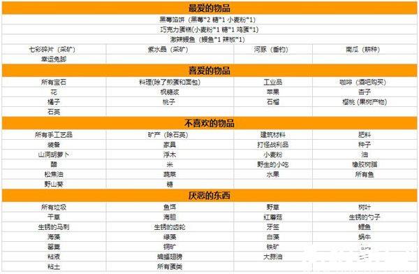 在星露谷物语这款游戏中,有着非常多的不同角色,每个角色都有自己的喜好和讨厌的东西。玩家可以通过赠送他们喜欢的东西来增加彼此的好感,解锁更多的互动和剧情,好感值在游戏中的作用是很重要的。下面小编就给大家详细罗列了各个角色的喜好,一起来看看吧。
