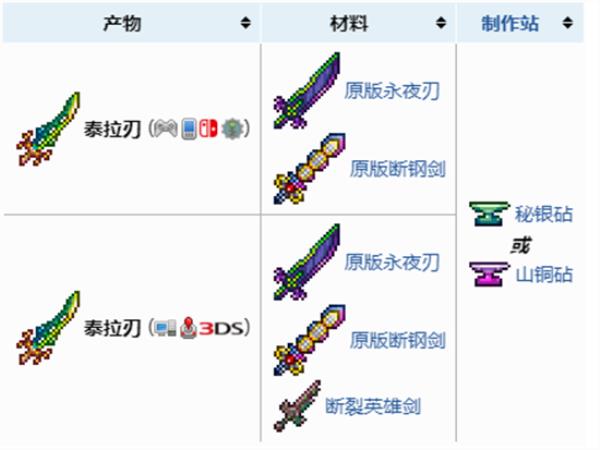 泰拉瑞亚泰拉之刃合成方法