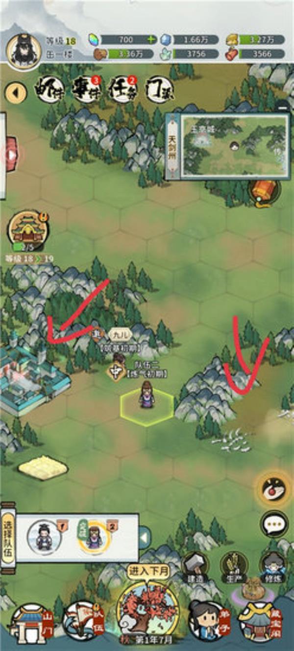 过完教程,会给你一个初始五人队。(小师妹+掌门+三个六维4+的小人)