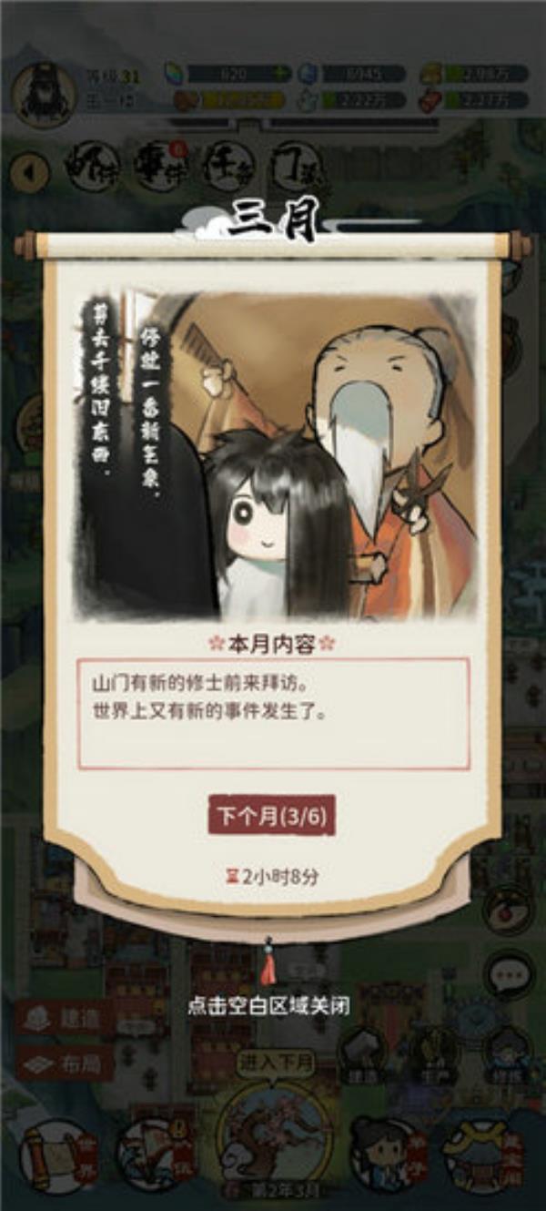 目前游戏内时间为第二年三月,还可以点三次下一月。