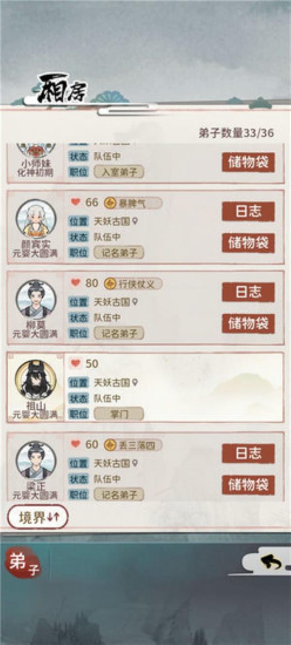 继续主线可以看到思怡(元婴中期,喜好乐器),可以直接招募,不需要战斗。招到后传功给六维高的。